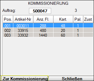Der Lagerist erhält über seinen funkgesteuerten Handscanner im Lager am Lagerfach seinen Auftrag angezeigt und gibt sein Arbeitsergebnis (kommissioniert, vorbereitet, geändert, nachkommissioniert) ein.